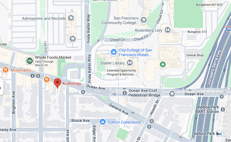 One of Kushology’s biggest strengths is its location. Ocean Avenue connects multiple slices of city life, with City College of San Francisco, BART access via the Balboa Station, and nearby routes to the Excelsior, Sunset, St. Francis Wood, and Ingleside.