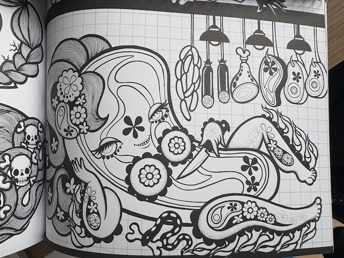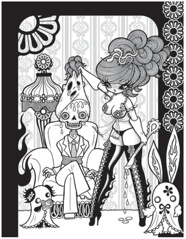 A trippy, black-and-white coloring book by cult San Francisco illustrator Junko Mizuno. 30 original pages to fill with color, madness, and joy.